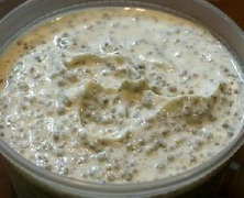 15 cl de lait concentré non sucré BONNET ROUGE, 400g de fromage blanc, 15 cl de crème fraîche ou crème liquide, 2 yaourts natures, 200 g de semoule de mil, Sucre en poudre à votre convenance, 2 sachets de sucre vanillé, 2/3 cuillère à soupe de raisin sec, De la muscade en poudre